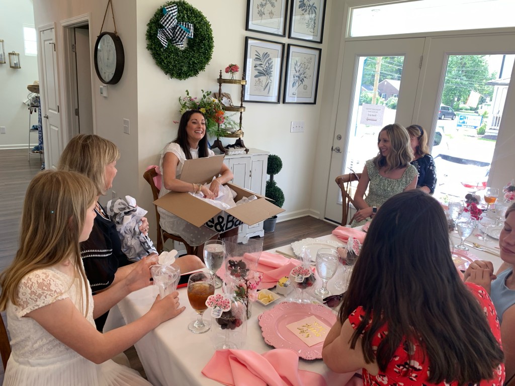 Last weekend I had my first wedding shower. Scott’s mom’s friends threw it for me at a sweet little tea shop in Fishers called Twigs and Tea. I loved everything about it! The decorations, the food (chicken salad for lunch and chocolate, strawberry, and coconut covered strawberries for dessert), the people! It was really wonderful to be able to put faces to names of people I have heard about for the last few years, but have never actually met (or met once a long time ago! LOL) Everything was perfect! Below are some pictures from the wonderful day!
