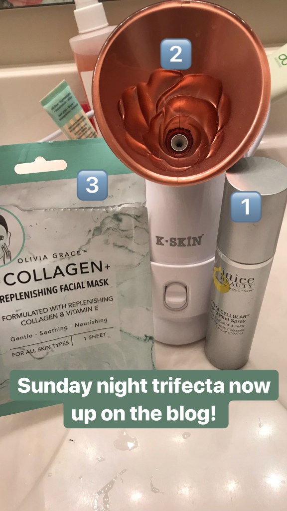 After you wash your face and make sure all make up is removed, its time for the fun stuff! If I am feeling extra stressed I use my K-Skin Facial Steamer. It will make you feel like you are at the spa! It is very tempting to use it every day but be careful- it will dry your skin out if you use it too much! So I only use it 3 times a week at most!