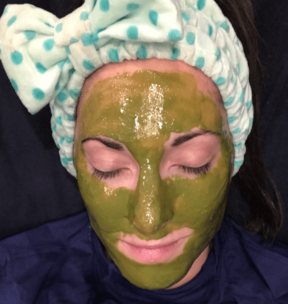 Anyway, I have been busy testing out some fun holiday masks! First up, “Un-Grinched”. If you were thinking that avocado was used in the making of this mask, think again! Can you guess what I used?! Just two ingredients- water & matcha!